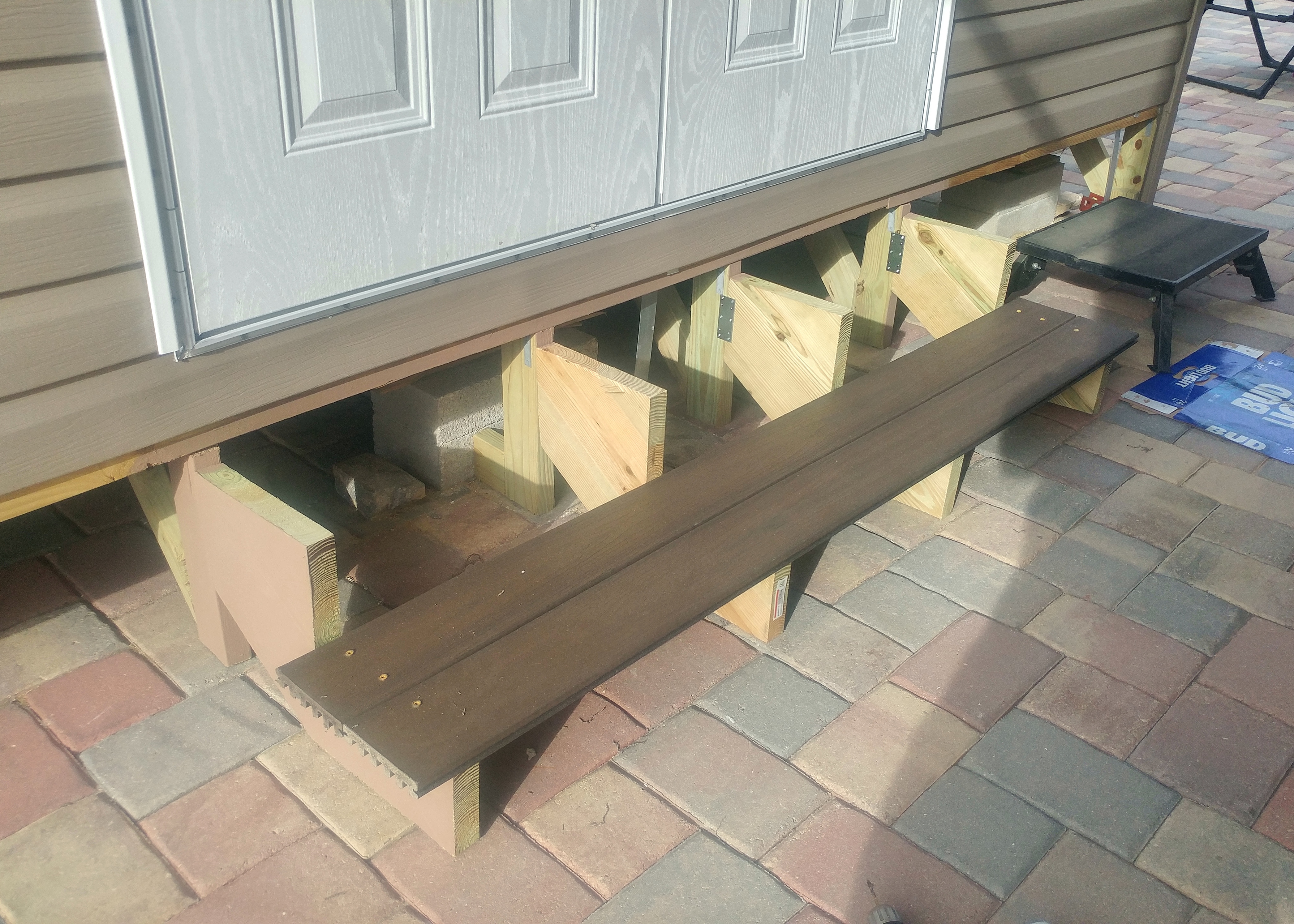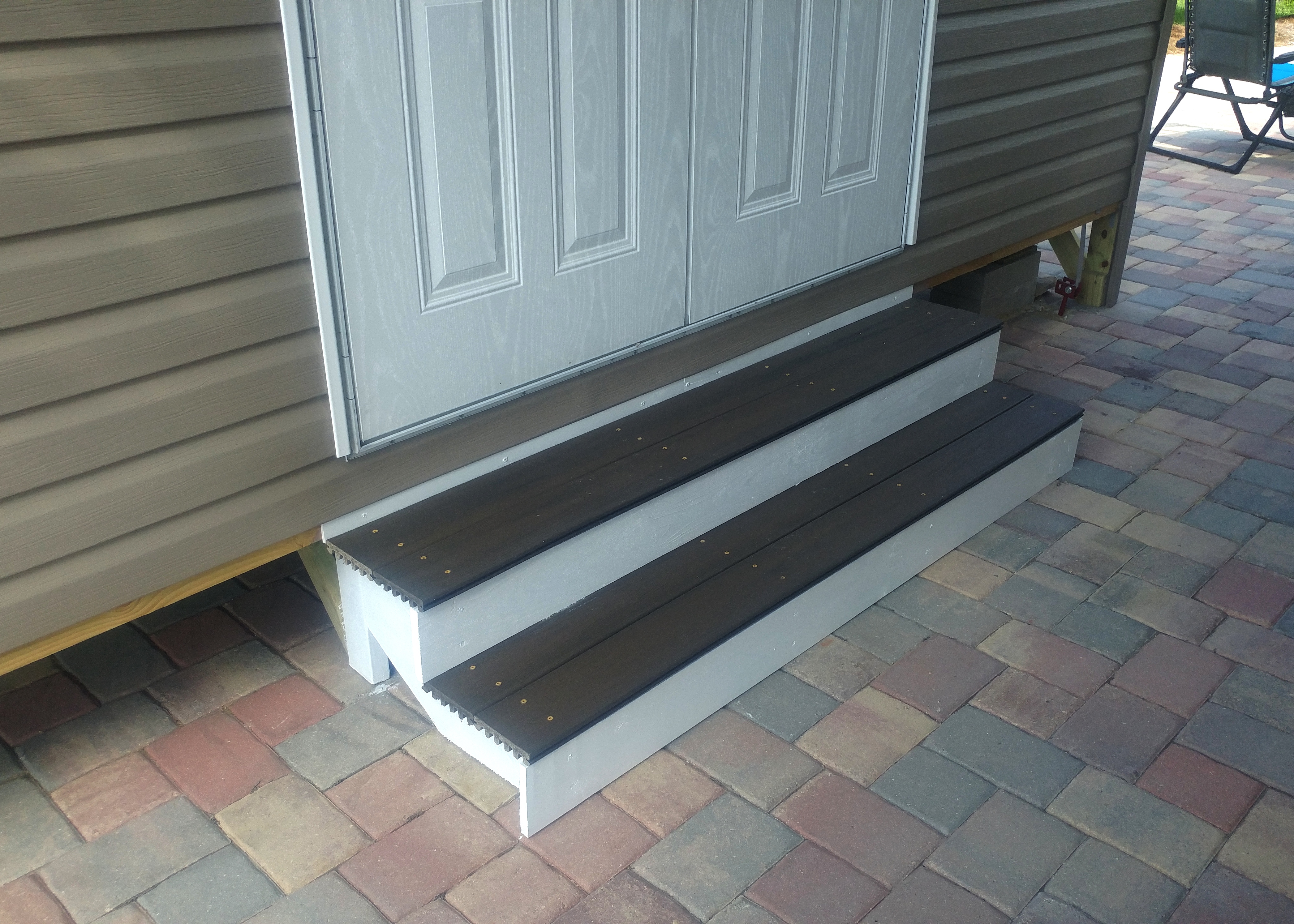 I did make a couple of minor mistakes. For no good reason, I decided to use screws to attach the cosmetic strip at the top and, no surprise, the screws split the thin strip of wood. I will eventually replace the strip and this time use finishing nails, as any halfway competent carpenter would do. I also painted the stringers brown initially and didn’t like the result, so I redid them in white. But no screwups on the things that mattered.