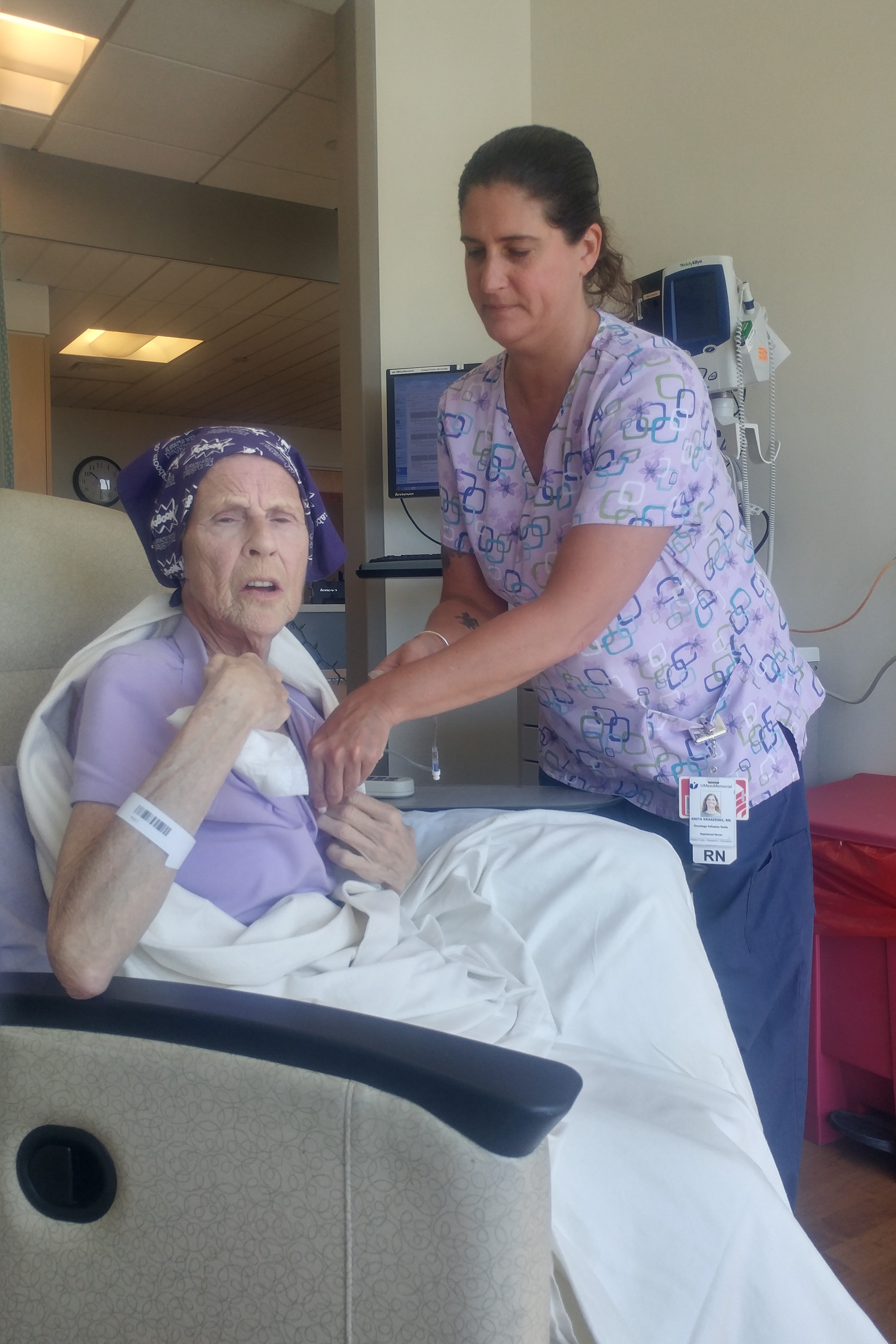 Jett had her first chemotherapy infusion on Monday. She approached it with a great deal of trepidation. She had, of course, heard all the horror stories of violent upchucking and generally feeling like crap. But she was committed to doing a minimum of one treatment, so Monday morning she got showered and dressed, took a deep breath and she went off to take her medicine. So to speak.