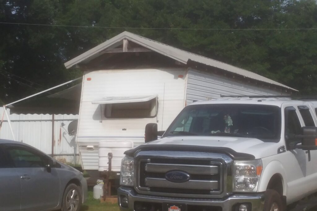 Our home in Savannah for 2 nights was the Sunshine RV Park. This is a family-owned campground (I met the grandfather who founded it and the grandson who is running it) of about 100 sites with a mix of long-term residents and transients. There are no park models but some of the RVs clearly had not moved in years. Some of them had “interesting” modifications, like the trailer with the pitched aluminum roof. They also had fences that seem to have been made from old billboards. This campground did not put a premium on aesthetics.