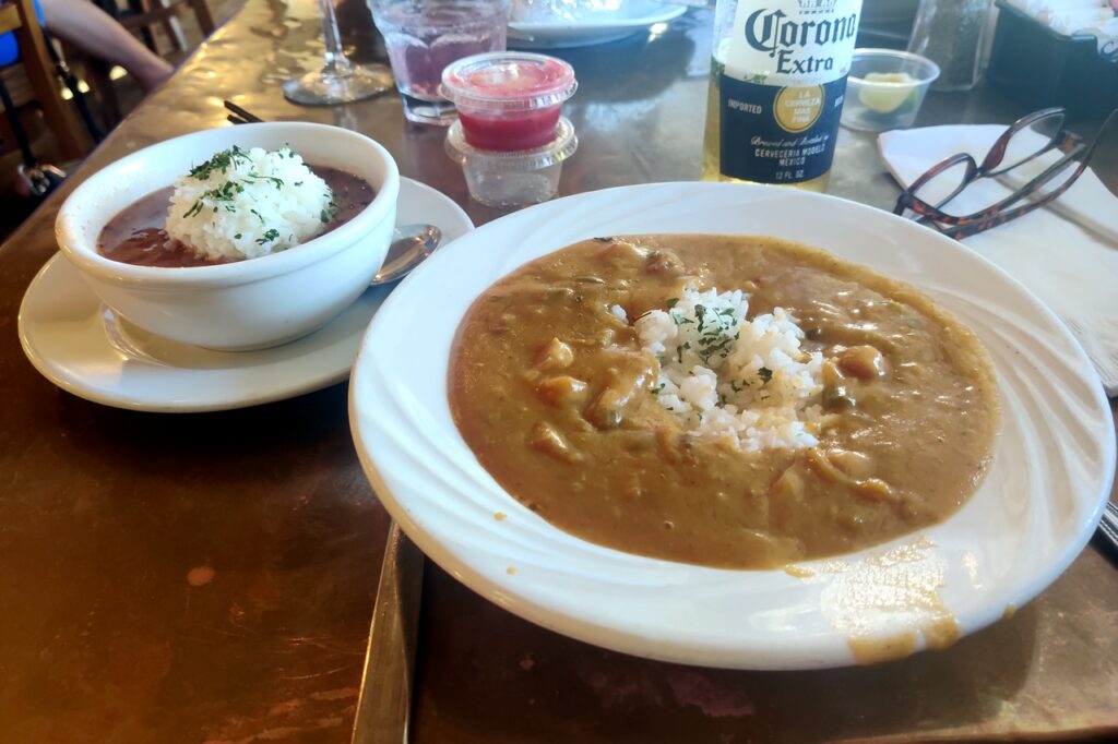 Our lodging on the second day was the LaQuinta in Port Allen LA. While not as nice as the Clarion Point on the first night – and certainly not as inexpensive – it was more than adequate. And we found a local restaurant – the Court Street Cafe – that verged on superb. I had my first crawfish etouffee, which was delicious, along with a chicken gumbo soup. Ooma had a beef filet that she rated as excellent. A bit pricey, but a fine meal in a town without a lot of restaurants other than fast food joints. She also got to instruct the server on how to make a cosmo, which she then enjoyed very much.