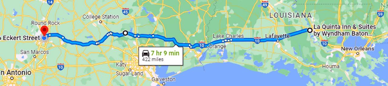 428 miles via I-10, US 69, TX 105 and US 290. Cumulative miles: 1249.