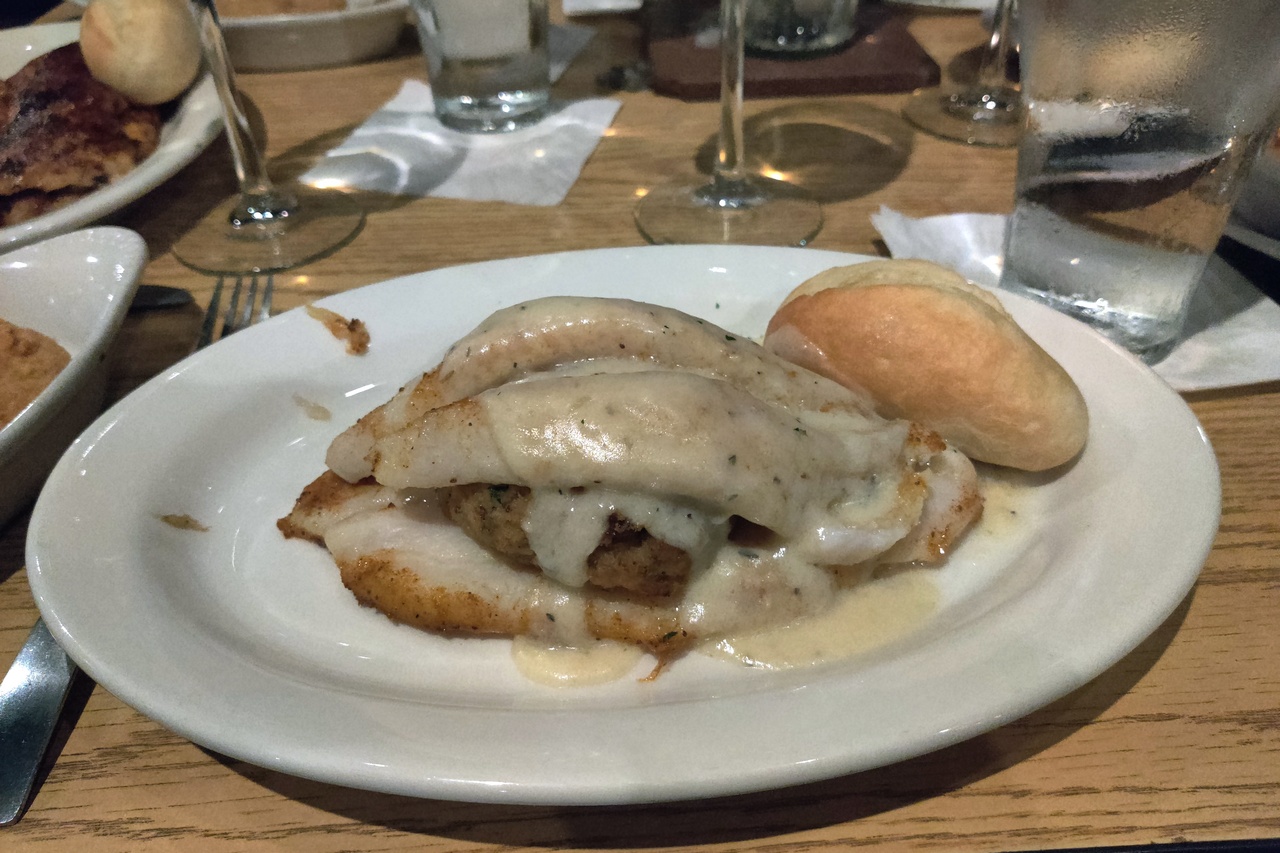 Our home in Daphne was the Hampton Inn Mobile – East Bay/Daphne. Perfectly adequate, though a bit tattered, with a nice view of Mobile Bay. The reason for stopping in Daphne was proximity to Ooma’s sister, Maggy, and her husband, Tom. An astute reader will recall that we saw Maggy, briefly, on the TX1 trip from Austin, but that she had a cold at that time and we could not get close. And we didn’t see Tom at all. This time we got to touch both and have dinner with them at Felix’s Fish Camp, an East Bay institution on the causeway. Great view, great service, great food. Arguably the best meal we have had on the entire trip, which is saying something as we have eaten very well. We all shared appetizers of Shrimp Cocktail Constantine and Fried Crawfish Tails (my first crawfish dish ever – delicious!) before entrees of Crabmeat Stuffed Fish Fillet for me and Fish and Shrimp for Ooma. All outstanding. And we got to see a bright red sunset over Mobile Bay. A wonderful evening all around.
