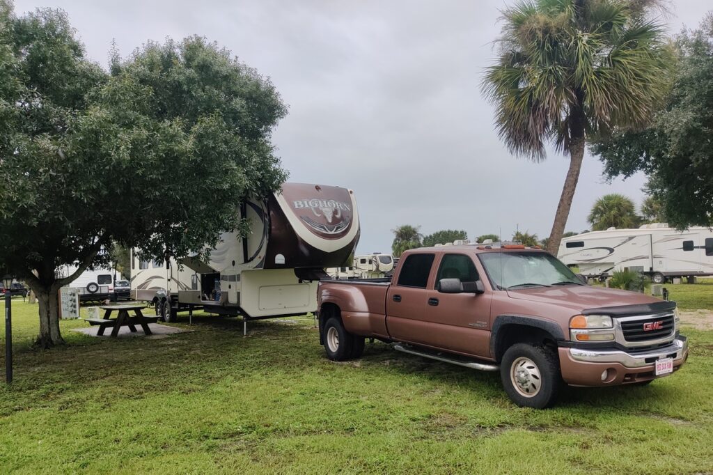 I arrived Friday and did a quick (20 miles) “test drive” of the RV on Saturday to convince myselft that the rig, after being stationary for almost a year, could safely go 40 miles. The test had some minor problems but was successful overall. So I booked 2 nights at The Glades in Moore Haven, about 40 miles east of my site and about 50 to 60 miles east of the projected path of the storm. I thought that would be far enough from the eye to prevent damage to the rig.