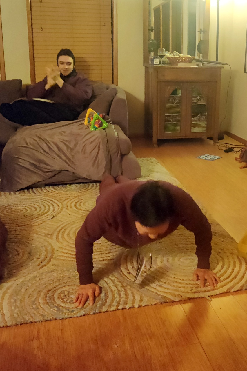 On the other end of the age spectrum, family friend Stephanie, who is somewhere north of 80, demonstrated how she could still do 20 pushups. Impressive. And a reminder that I need to resume my core exercises.