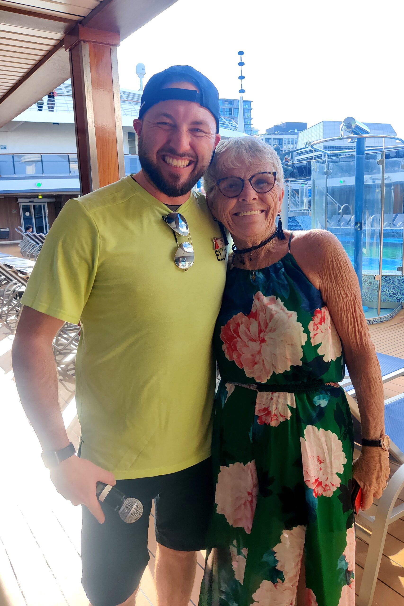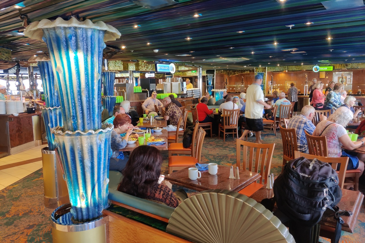 The Pride. This is one of the smallest ships in the Carnival fleet with a capacity of 2,124 passengers – less than half the capacity of many of their larger vessels. It is also old, launched in 2001. It was refurbished in 2012 and is going into drydock in Europe after this journey, so it is showing its age. But it is still beautiful, with classic Italian decor. And the staff is friendly and efficient. So it made a positive first-day impression.