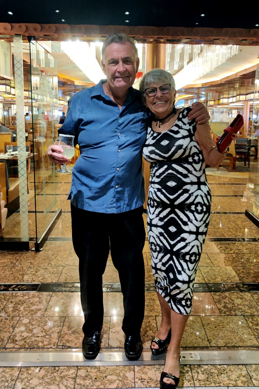 Our final day before landing in the Azores. It was a bit cool – low 70s – but was a very fine day overall. We had leisurely meals and met some nice folks. In the afternoon we spent nearly 2 hours in the hot tub, talking to some lovely women, plus one son. We lost a bit at the casino (up around $50) then went to the comedy club for a very funny show by Lance Montalto in which Marlene was highlighted for her laugh, which is infectious. A good day.