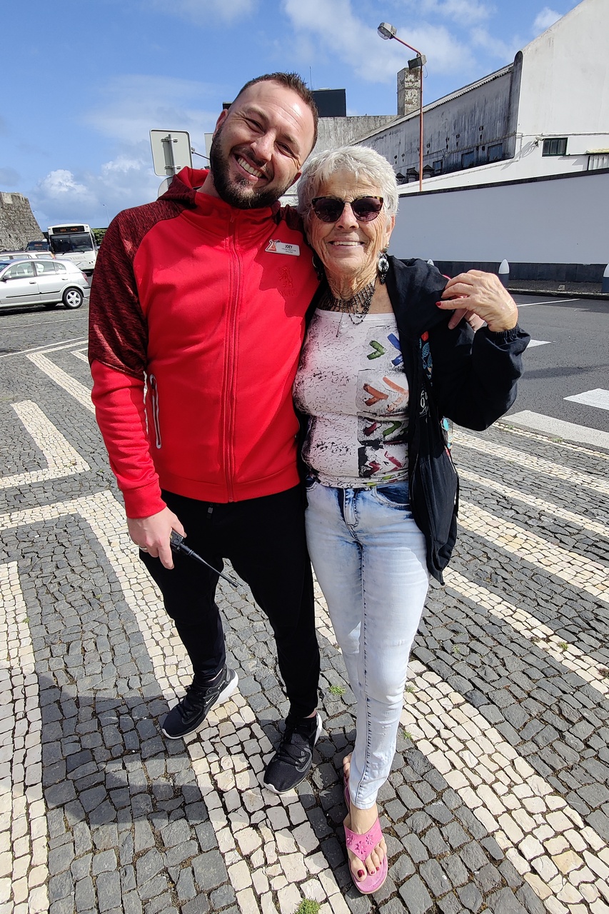 After 8 days at sea we finally saw land again. We docked in Ponta Delgada in the Azores Islands. This is a modern and fairly large city so we didn’t find any ruins or ancient homes. But we did find a nice harbor and a shopping area where we could buy some trinkets. And a couple of dresses for Marlene.