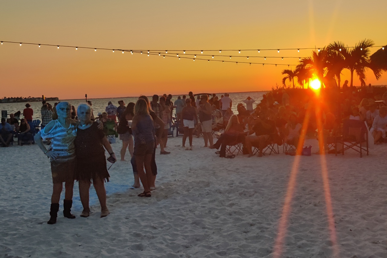 For Saturday dinner we dined and danced at Harpoon Harry’s in Punta Gorda. The band there was good, but we left when Pure Country started playing on the beach. We LOVE Pure Country – a great country band that plays for hours without a break. The lead singer, Ed, often roams through the crowd while singing. Again, we danced, but learned quickly that dancing on the beach is not easy. Once we learned that lesson we confined most of our dancing to the paved walkway. We were treated to a wonderful sunset.