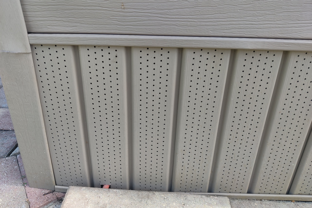There was one minor installation-related problem. I asked the technician to run the fiber optic line under the shed skirt if possible. That was either not possible or (more likely) fell into the “custom installation” category. In any case, the request was ignored. So I had to cut a hole in the skirt. The blemish is barely noticeable but will be one of those things that will annoy me forever.