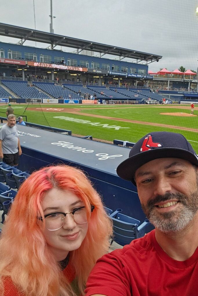 Thursday was an afternoon of shopping (back-to-school time for Lili) as Tony bought some clothes for his daughter at the Natick Mall. I then cooked dinner (spaghetti and Italian sausage) for them before we all went to the WooSox game (the Worcester Red Sox, the AAA farm team for the Boston Red Sox) at Polar Park in Worcester. Not the most exciting game – the WooSox lost, 2-1 – but it didn’t rain.