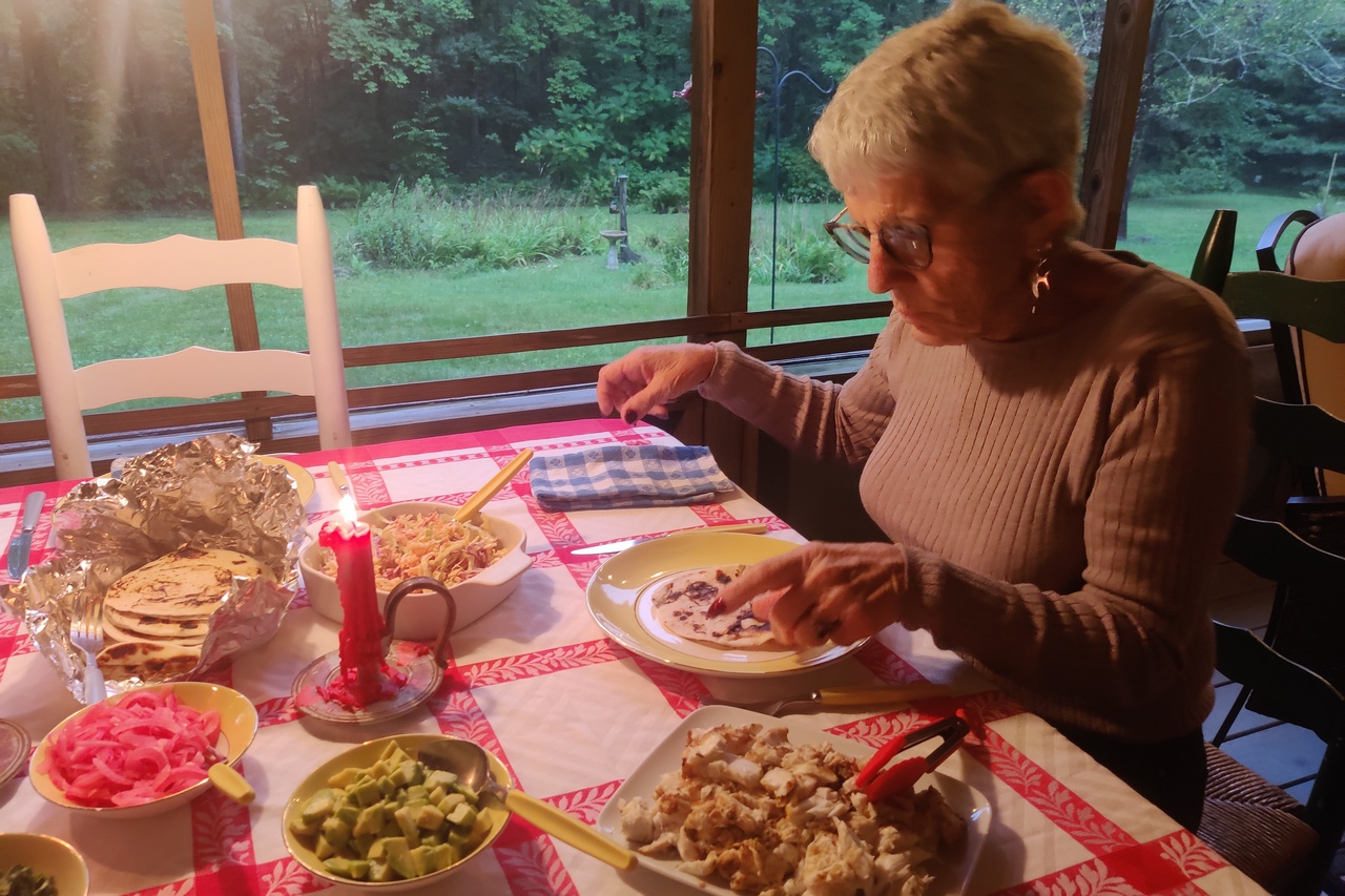 We were well-fed, too. Kim prepared some wonderful fish tacos on Friday and chicken shish-ka-bob on Saturday, accompanied by an amazing salad with grilled red onions. She is a wonderful cook.