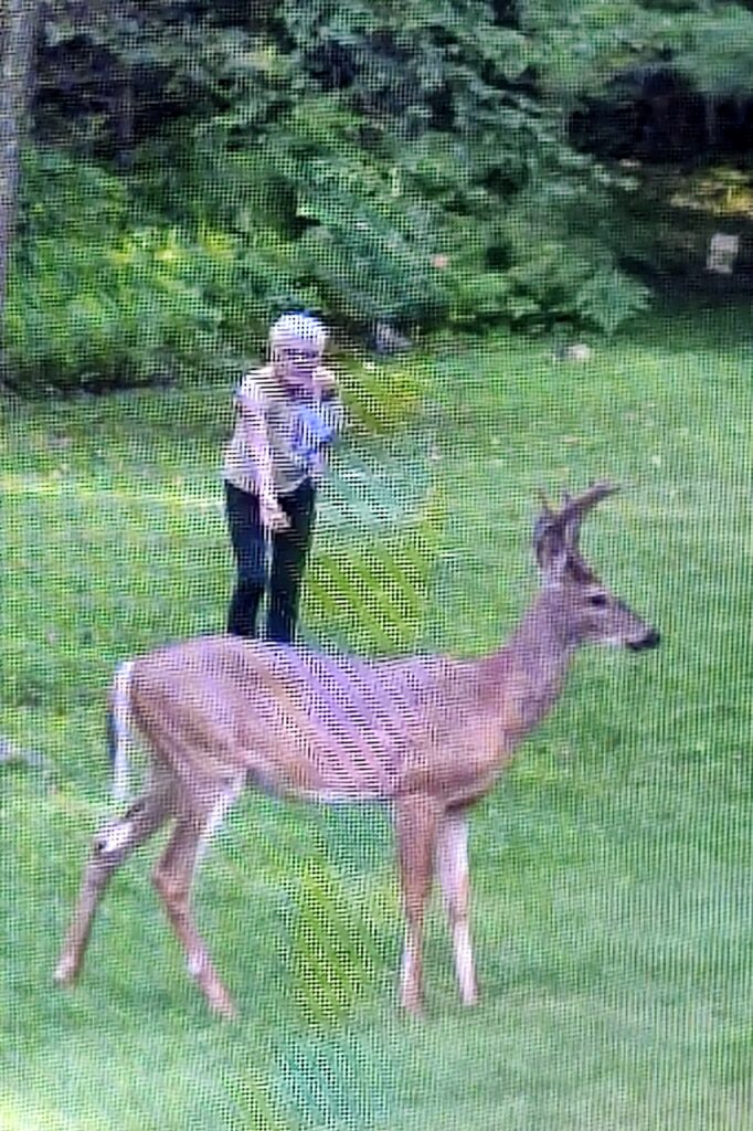 First, New Salem MA. Ray and Kim, who provided our squatting home in Worcester, invited us to their cabin in the woods in New Salem MA for two nights – Friday and Saturday. I have gushed about this serene cabin before and it was just as serene this time, with deafening quiet (except for the humming of the hummingbirds). But this time we also got several visits from the resident white-tailed buck (who let Marlene get surprisingly close) and a juvenile porcupine. Some wild turkeys, too.