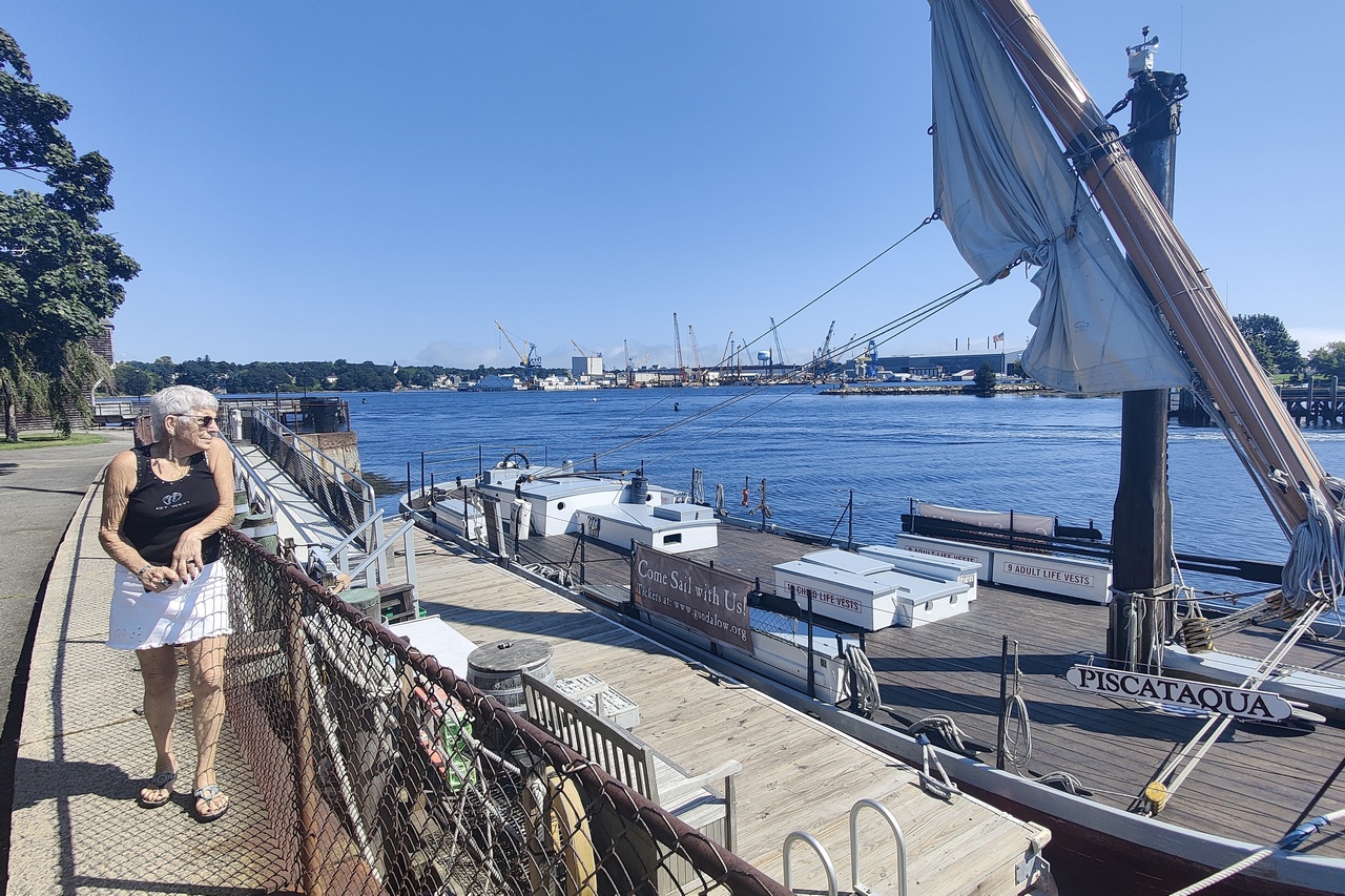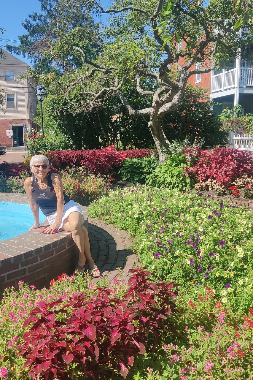 Monday was a huge sightseeing day. We drove to Kittery ME (specifically to the Kittery Trading Post), just to let her say she had been to Maine. She wasn’t impressed. But she was impressed with Portsmouth, NH, just over the river from Kittery. I gave her a driving tour of the wonderful downtown area, then stopped at Prescott Park to view the gardens. She loved those.