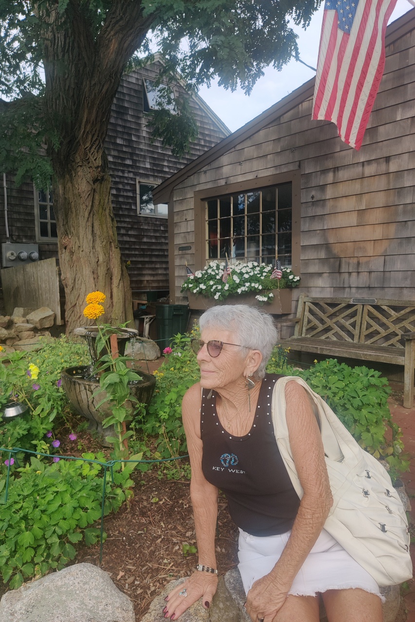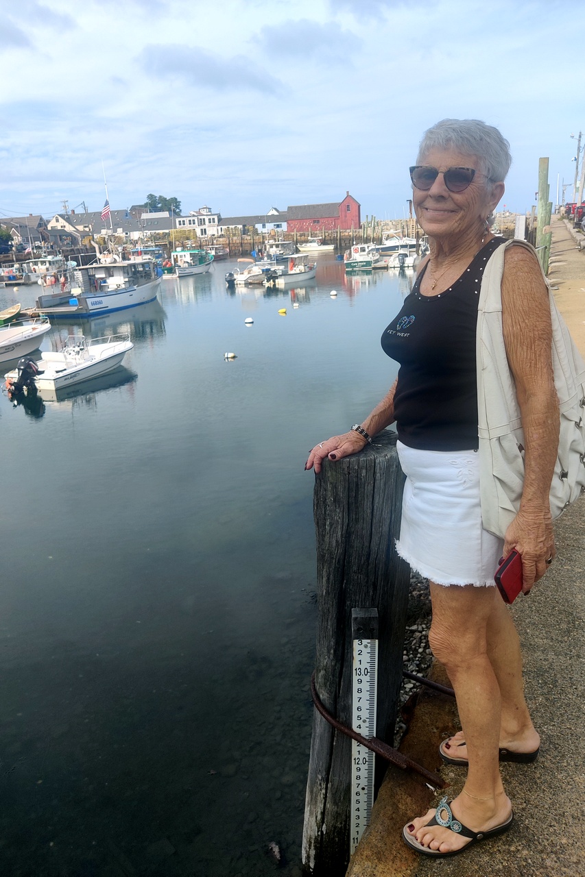 We had a very late lunch at Woodman’s of Essex, sharing a fried fish dinner with french fries and onion rings. Then we moved on to Rockport MA which, of course, she loved. Everyone loves Rockport. After the sightseeing we briefly visited Jett’s grave.