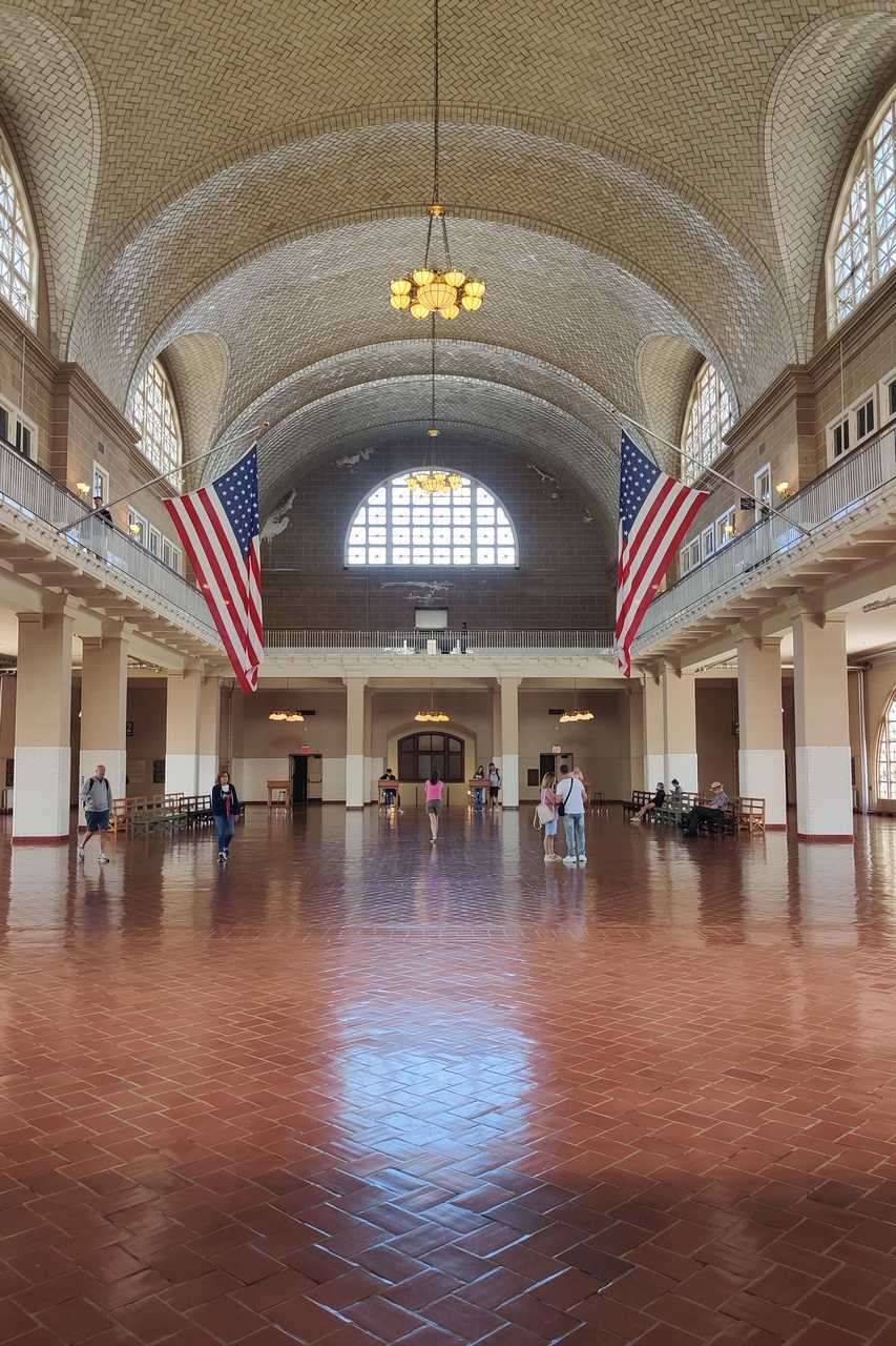 The tickets were sold at the old Central Railroad of New Jersey terminal building which was a long walk from the ferry (probably a tenth of a mile). The ferry ride to Ellis Island was only about 10 minutes. We spent nearly two hours touring the building (only one building – the one used to process immigrants from 1892 to 1925 – has been renovated and converted into a museum). There are many displays and a 25-minute film about the processing of the immigrants. Quite interesting.