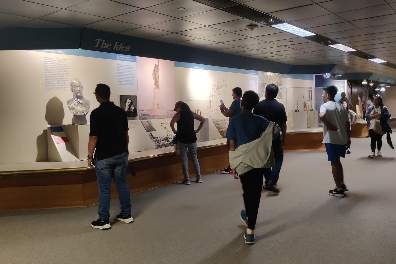 We were on Liberty Island about 2 hours. We walked to the top of the pedestal – 195 steps (shorter than the Bunker Hill Monument). Everyone else took the elevator. We also spent some time in the museum.