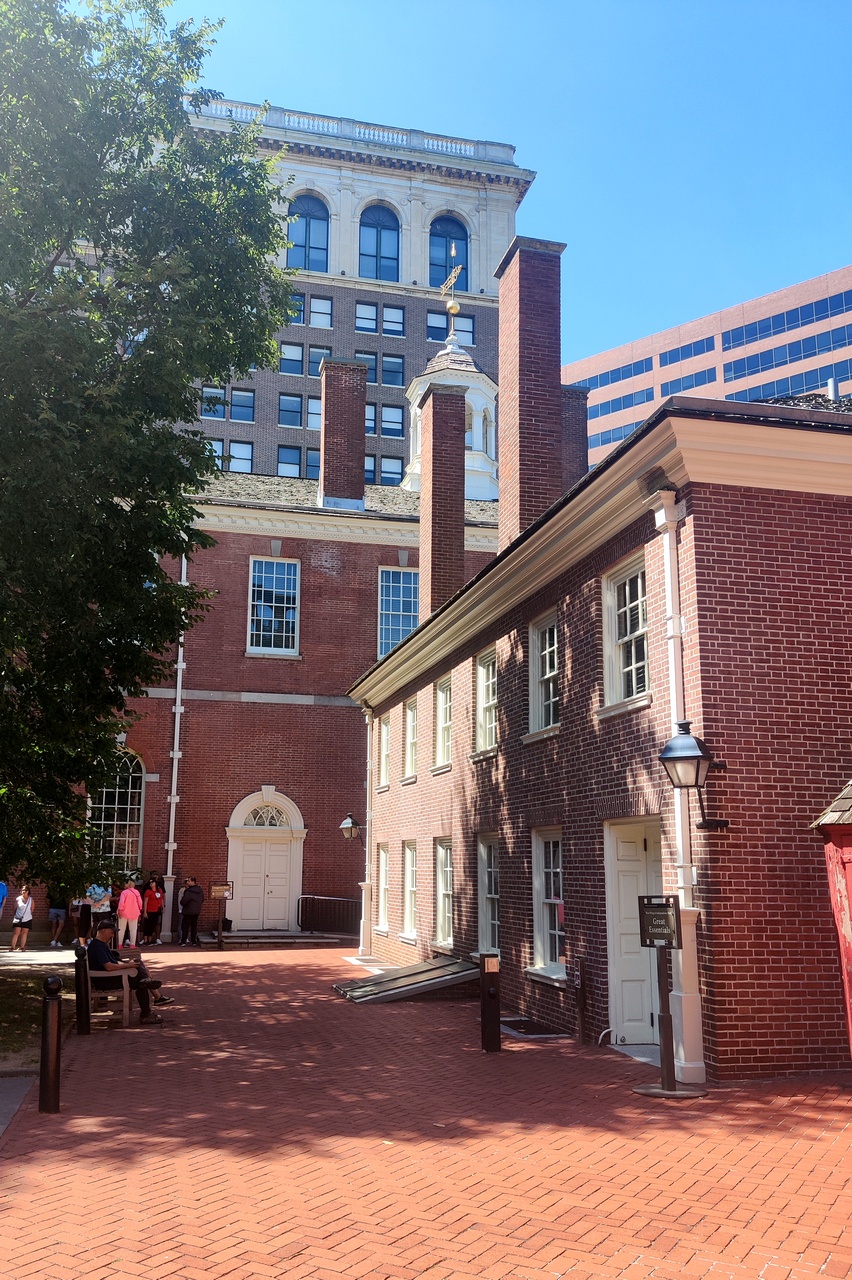 Independence Hall, on the other hand, was a disappointment. Tickets were needed to tour the hall and none were available. Viewing the Liberty Bell was free, but the line was over 30 minutes long. The hall where Congress met until the capitol building in Washington was finished was also free but the line there was also too long (I had limited our stay to 30 minutes because the parking was very expensive – $12 per hour – and we wanted to reach VA before dinner). So we just walked the grounds and looked at a few of the exhibits in the Visitors Center. Perhaps the most interesting thing we saw was the excavation of the slave quarters where George Washington housed his 9 slaves while he was President. I was not aware that our first president had slaves while in office.