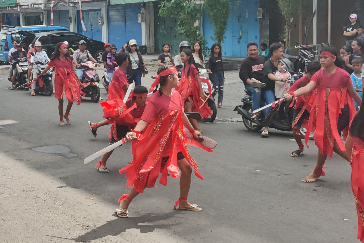 We visited on a Sunday and, I learned later, on a holiday that was the equivalent of our Thanksgiving Day. Bitung is a predominantly Christian city, unlike the rest of Indonesia which is predominantly Muslim. The shops that were open were all Muslim-owned. In the afternoon there was a huge parade with thousands of mostly young children, all dressed in red (like the church group we had encountered earlier).