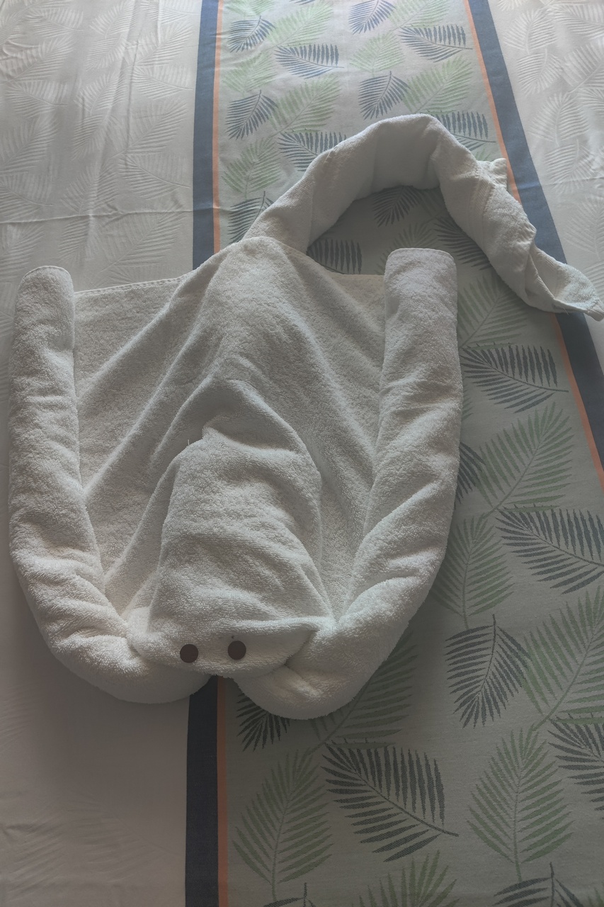 A quiet penultimate day. We did get a towel animal. We haven’t gotten many because we didn’t ask the cabin attendant to make up the room most days.