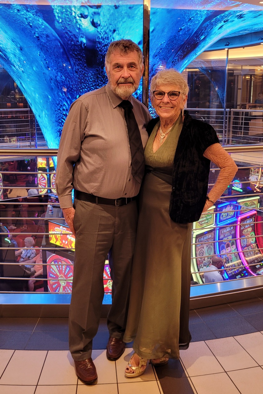 Dinner was elegant once again. Marlene was beautiful, as always, but I dressed down – just a tie, no jacket. The food at dinner was disappointing. The lobster tail was chewy and the prime rib was tough. It is difficult to have a prime rib that is hard to cut, but I had it this evening.