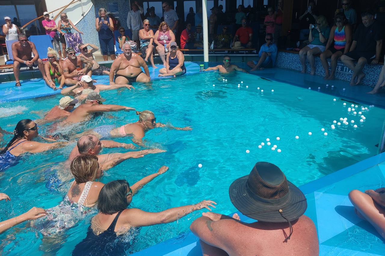 A day at sea is usually a day to relax and recover and that is exactly what Day 9 was for us. Besides the casino the big event was the swimsuit stuffing competition, a silly contest in the pool in which people compete to see who can capture ping-pong balls and stuff them in their swimsuits. The winner had 12.