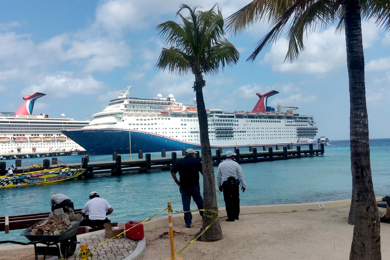 The day began with breakfast in the buffet and some blogging (through Day 4). Then we went ashore with the intent of going into downtown San Miguel which is pretty much the only city of any size on the island of Cozumel. But we never got there. Marlene and I had some kind of silly argument. I can’t remember now what it was about but the result was that we returned to the ship without doing much of anything on shore. I did some reading while Marlene did her own thing. I got a text message from her in the afternoon that she was going to Margaritaville, which was nearby in the port. Later, as the time to return to the ship approached, I texted her to remind her to head back. I got alarmed when she didn’t respond and left the ship to go find her. I thought I had just an hour to get there and get back, so I walked quickly.