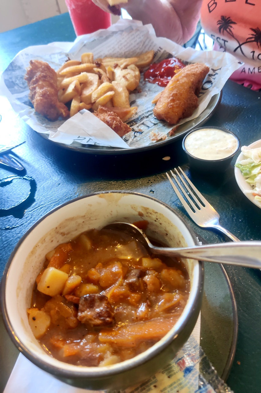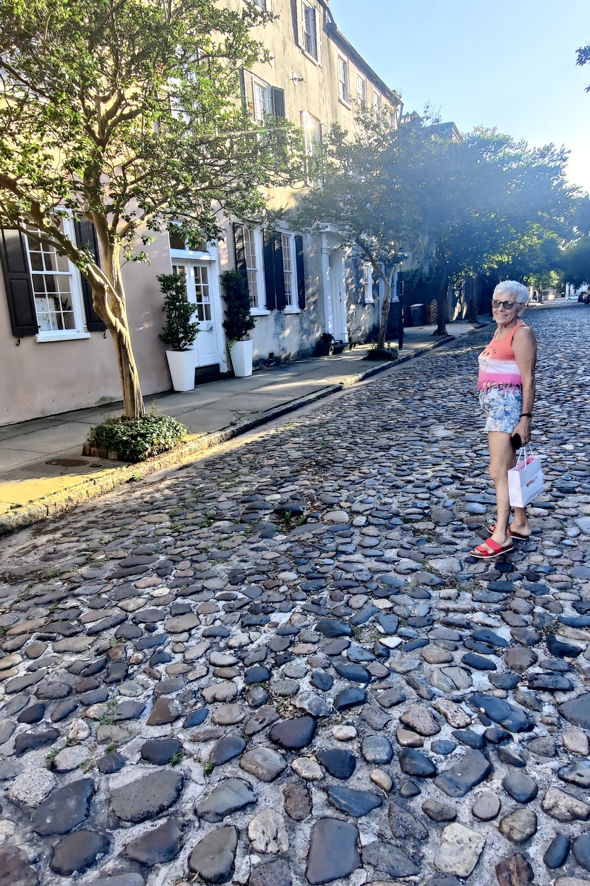 We strolled the 4 blocks of the City Market, looking at lots of stuff but buying nothing but a very tasty Arnold Palmer. We had a late lunch at Tommy Condon’s, my favorite Charleston restaurant. We shared fish-and-chips and Irish stew. Then we wandered back to the car. Another 90 minutes.