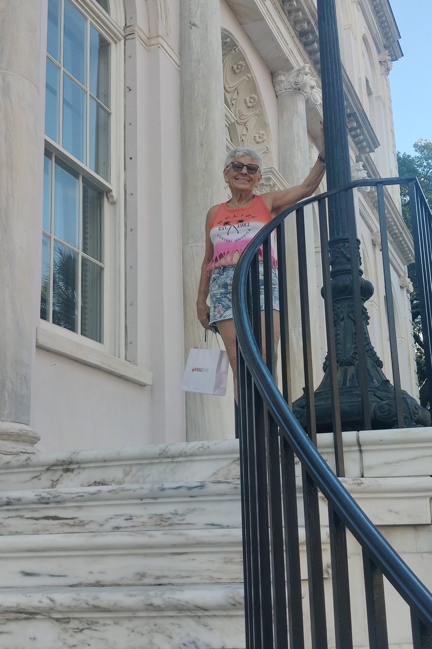 We had breakfast at the hotel and then headed out. But we didn’t go directly into the city. It was chilly and Marlene did not have a jacket to wear, so we went first to the Goodwill a couple of miles from us. Anyone who knows Marlene will not be surprised to hear that the “quick” trip to Goodwill took over an hour and ended with her walking out the door with two dresses and a some new used shoes. And, yes, a pullover sweathirt.