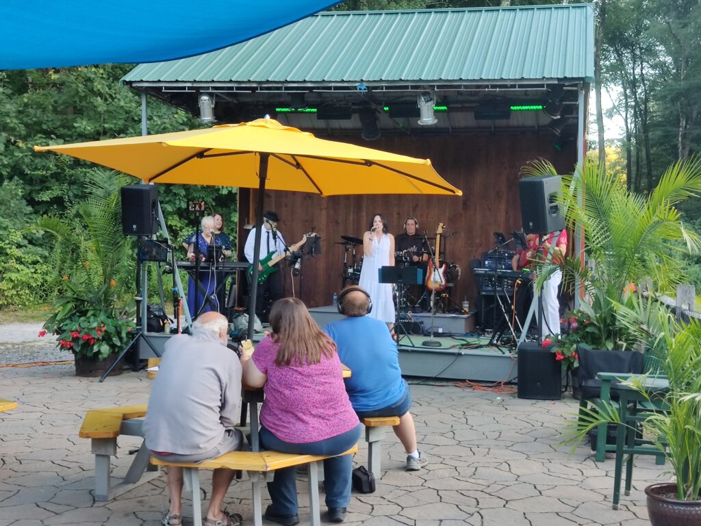 But Thursday we went to Kimball Farm, an ice cream place which also has a great seafood grill, a tap room, a gift shop, bumper cars, an arcade, a driving range, a pitch-and-putt golf course, a batting cage, a zip line and a stage for musical performances. A group called Word of Mouth. They were very good. We danced. We also did the zip line. A fun evening.