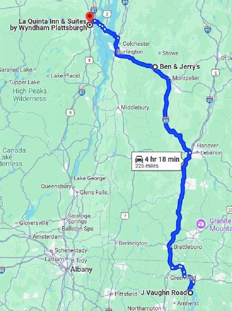 This was a trip made on a beautiful but cool Sunday in light traffic. It was a pleasant drive from start to finish. The highlights were a tour of the Ben & Jerry’s ice cream factory in Waterbury VT, a couple of hours browsing stores in downtown Burlington VT and an auto ferry to New York.