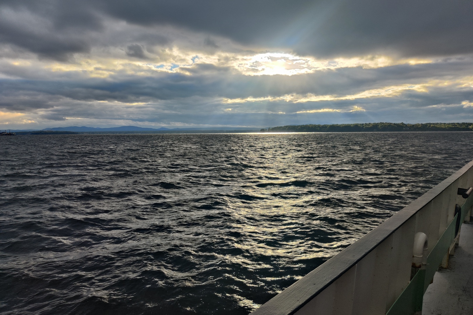 The ferry was also cold. But the sun broke through long enough to get some nice photos. This was Marlene’s first auto ferry ride.