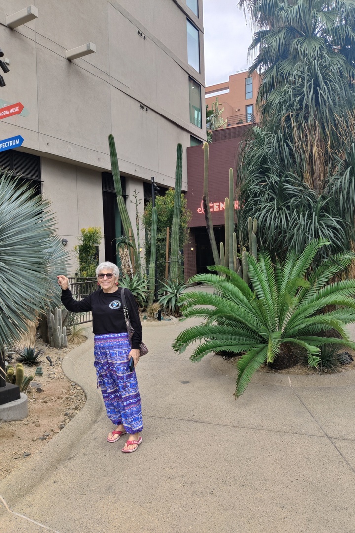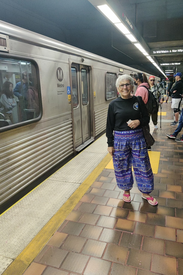 Being adventurous, we decided to try to get to the Hollywood Walk of Fame via public transportation. It was about 90 minutes away by bus. We walked about half a mile to the stop for the J bus, an express bus to downtown. We waited just a few minutes and it got us to the downtown transfer point in less than an hour. We were invited to share an Uber by another cruise couple on the bus, but Marlene wanted to do the second bus, so we crossed the street to look for the stop for the B bus. But I could find no mention on the bus stop sign of any such B bus. The I looked behind me and saw the entrance to the subway. I didn’t know LA had a subway! So we went down the escalator, figured out how to get a fare card ($2 for the card, 75 cents for the fare) and followed the signs to the B line platform.