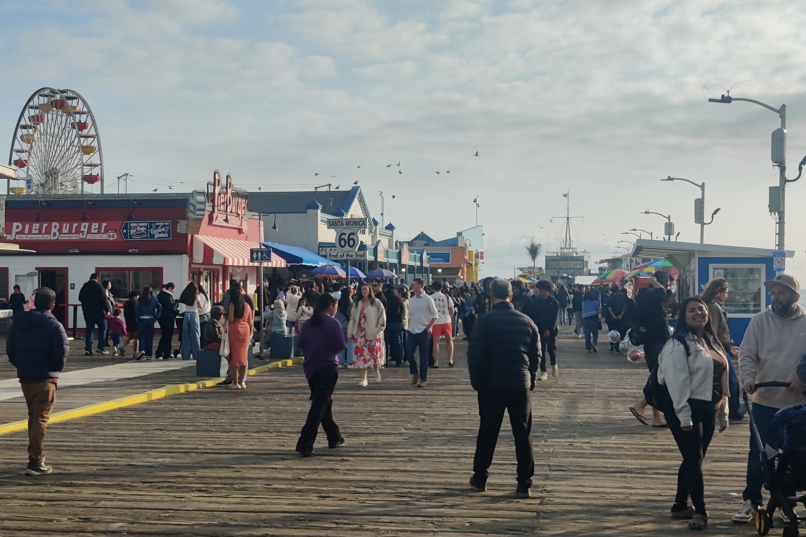 We got back on the subway, paid another 75 cents each to travel an hour to Santa Monica. We spent some time enjoying the bit of crazy that is the Santa Monica Pier. We also marveled that some people were actually in the very cold water on a very chilly day.