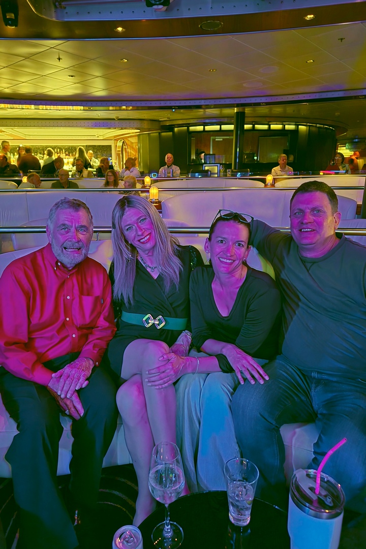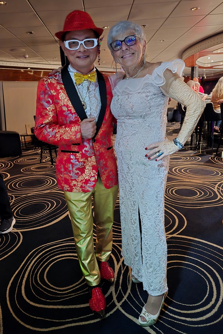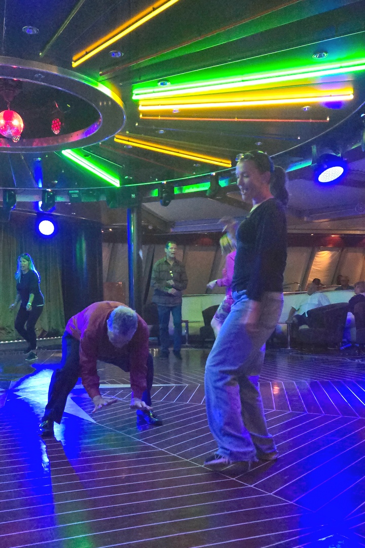 We then went up to the Spinnaker Lounge and danced. We sat with Dean and Leona, the couple from Dubai that we had met on the excursion in Costa Rica (and with whom I had gotten stinking drunk). We were joined by Leslie, a lovely transvestite.