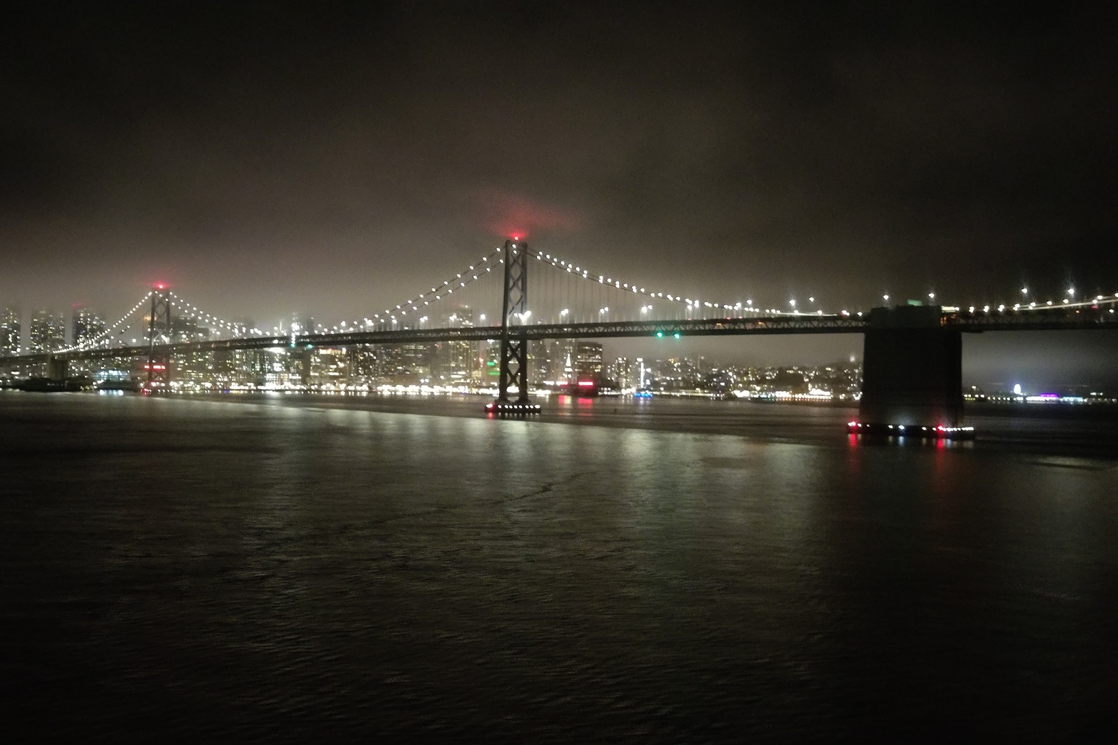 I took a photo of the Bay Bridge as we left. I was hoping for a photo of the Golden Gate Bridge too, but it wasn’t lit.