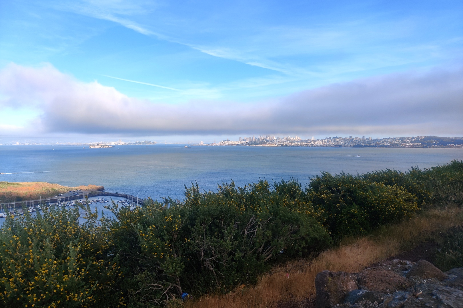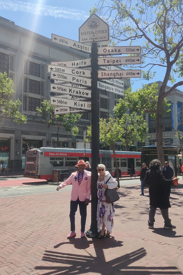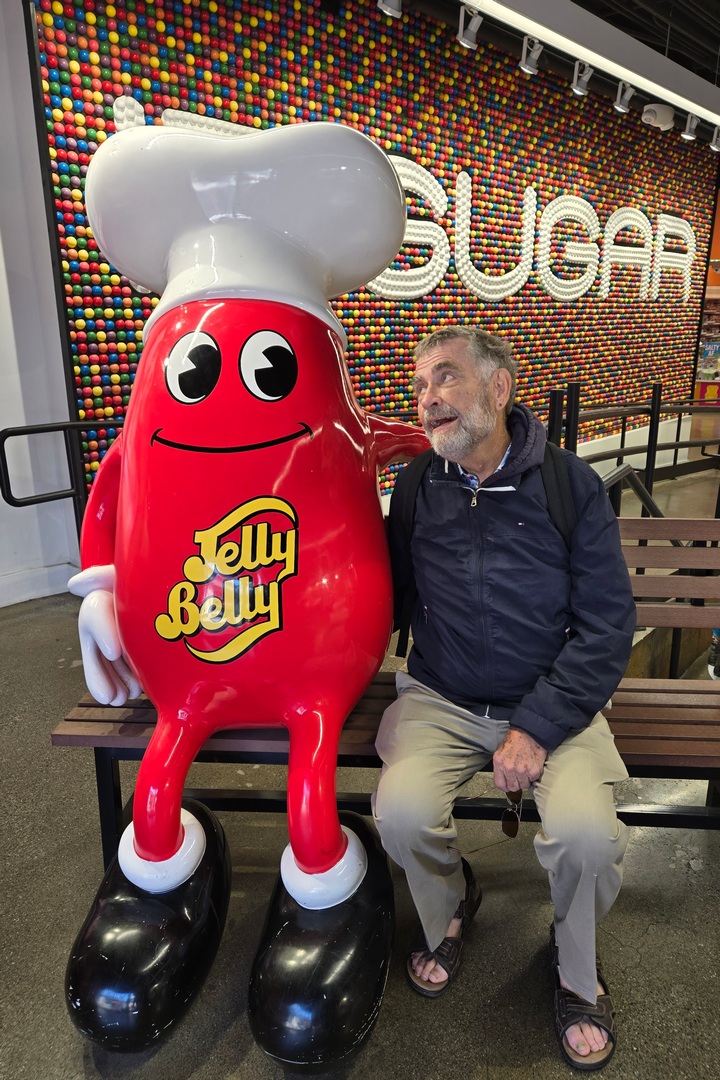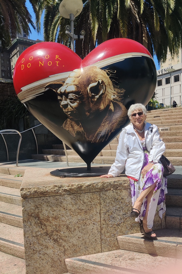 We continued the bus tour and got off in Haight-Ashbury, the funky ’60s hippie neighborhood. It is still a vibrant community. We found a nice coffee shop where we had coffee, gelato and a cookie (and a much-needed bio break). Marlene found a Goodwill and bought another dress. Then we got back on the bus to go over the Golden Gate Bridge.