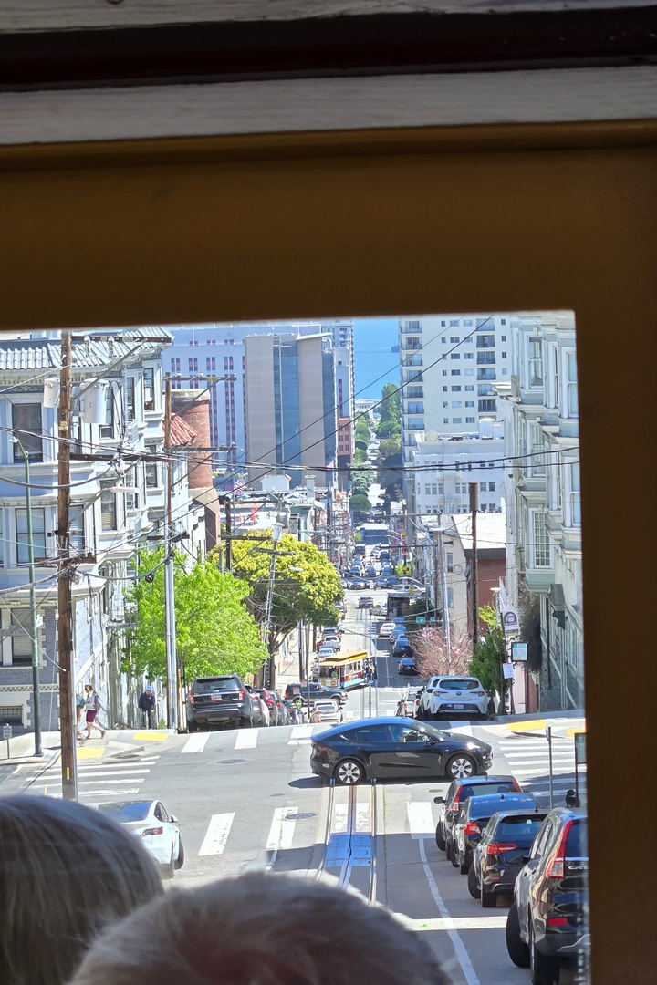 We had to wait a bit to board the cable car. We took it from one end to the other. Marlene didn’t think it was worth the $8 fare, but I felt we had to do it – it is an iconic thing to do in San Francisco.