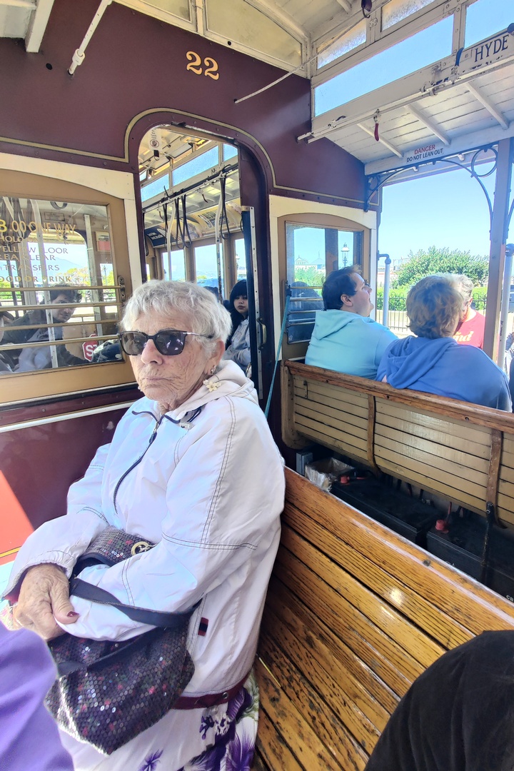We took the bus back to the Ferry Building then figured out how to get on the F trolley line (cheap – just $1.50). We rode that for nearly 30 minutes, then had to transfer to the 15 electric trolley. We waited about 15 minutes for that and rode another 20 minutes. We then had to walk nearly a mile to the ship.