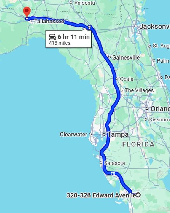 413 miles via FL 864, FL 82, I-75 and I-10 with a short detour at the intersection of I-75 and I-10. Auto miles: 413. Cumulative route mile: 413. Cumulative auto miles: 413.