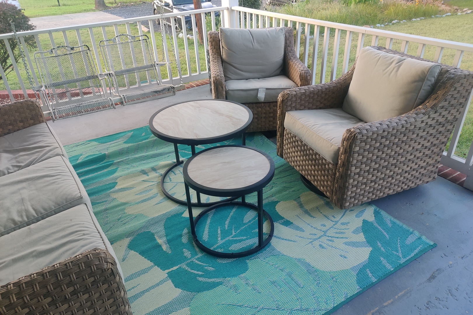 We spent the weekend in Luray VA at a VRBO farm. But we were non-paying guests, there at the invitation of the owners, Jett’s son Devin and his wife Mary. Also there were their son, Zachary, their good friend and neighbor, Angie, and Devin’s twin brother Joshua and his wife Cristina. Two other couples joined us for a cookout on Sunday. And 5 dogs.