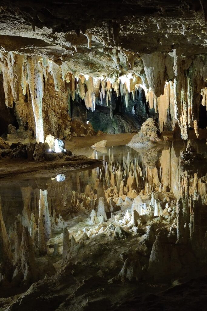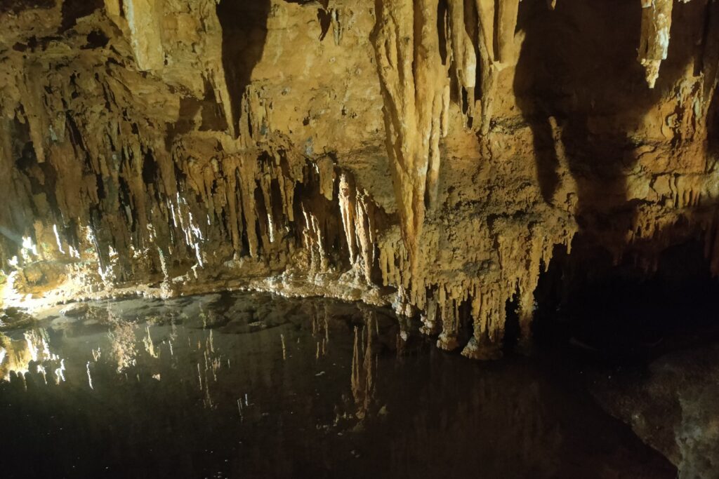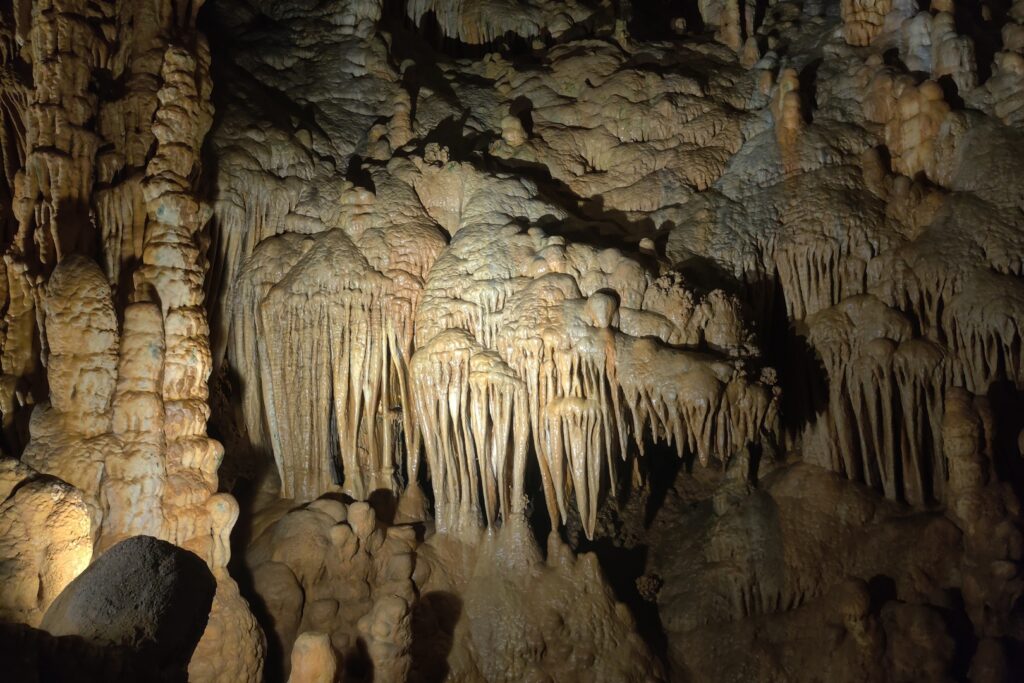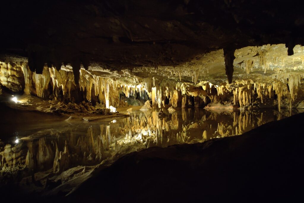 The last room on the tour is called “The Cathedral” and contains a pipe organ that produces music by striking stalactites with wooden mallets. The chamber was originally called “The Ballroom” because dances were held there – complete with a big band orchestra. Dancing in a cavern!