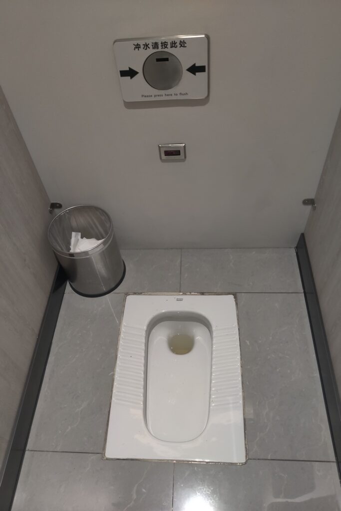 I tried to use the bathroom and was shocked to discover that the “fixture” in the men’s room was a hole in the floor. I haven’t seen that since 1975 in rural France. I passed in favor of the unisex bathroom that had modern fixtures.
