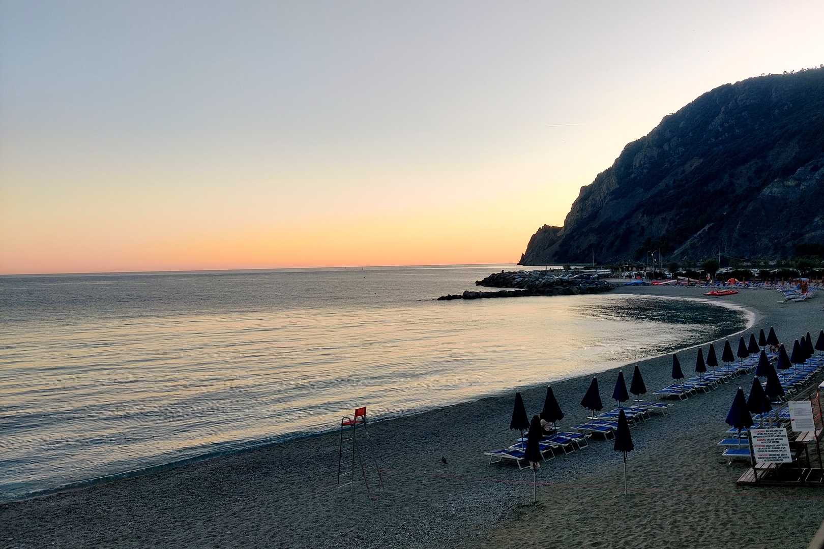 I was under the impression that Cinque Terre was a town we could drive through on our way to Genoa, but I was mistaken. Cinque Terre is accessible by one very narrow, winding, scary road – about 30 minutes from the expressway. We were able to get there at dusk. It is a pretty town, but it is basically a beach town. Probably one of very few beaches on this rugged stretch of Italian coast.