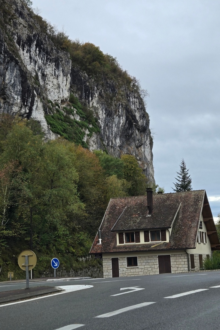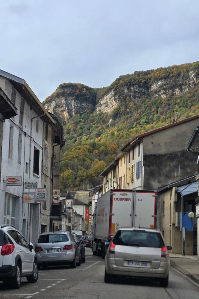 I expected the road out of Chambery to be flat and boring. It was pretty flat, but not boring. We drove through a valley with rocky hills on either side. There were two tunnels. Pretty dramatic. It got boring after an hour or so.