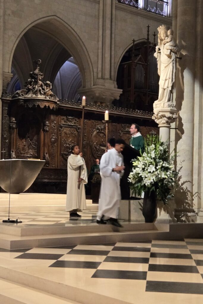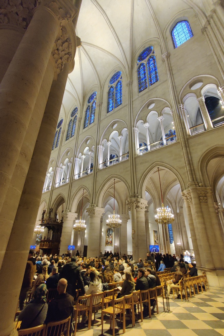 We boarded the subway to go to Notre Dame. Benjie left us to go home to edit his photos while Junko escorted us to Notre Dame. We got some nice photos outside, then waited nearly 30 minutes to be allowed inside. We entered just as 6pm Saturday mass was commencing. We got to tour the cathedral to the music of the mass. Very cool!