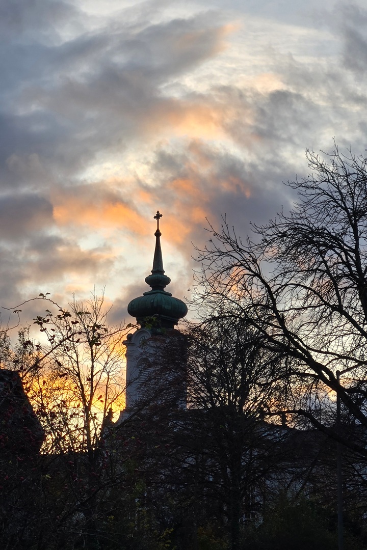 We logged over 14,000 steps in and around Salzburg. We were tired after our dinner so we headed back to the hotel. Marlene got a terrific sunset shot along the way.
