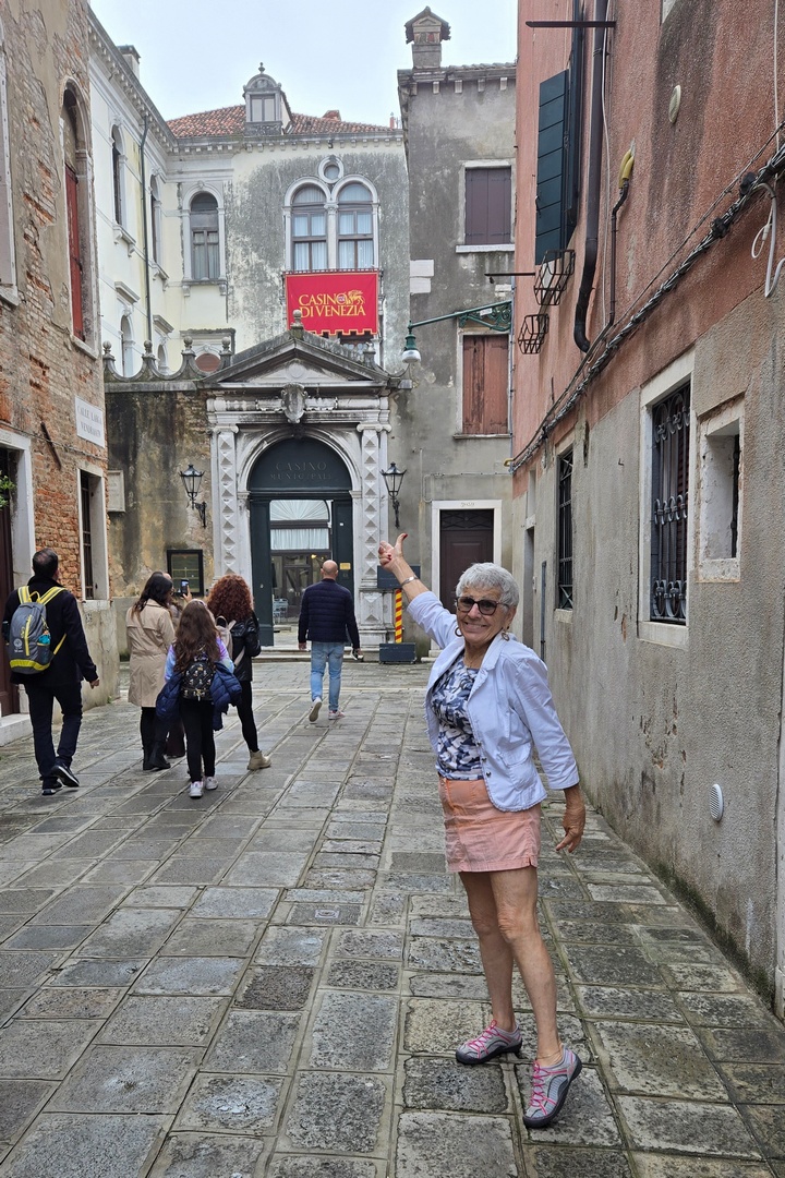 We learned that Venice has over 400 bridges. I think we crossed about 50 of them on our way to San Marco. And Marlene found a casino which, thankfully, was not open.