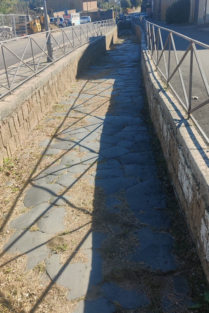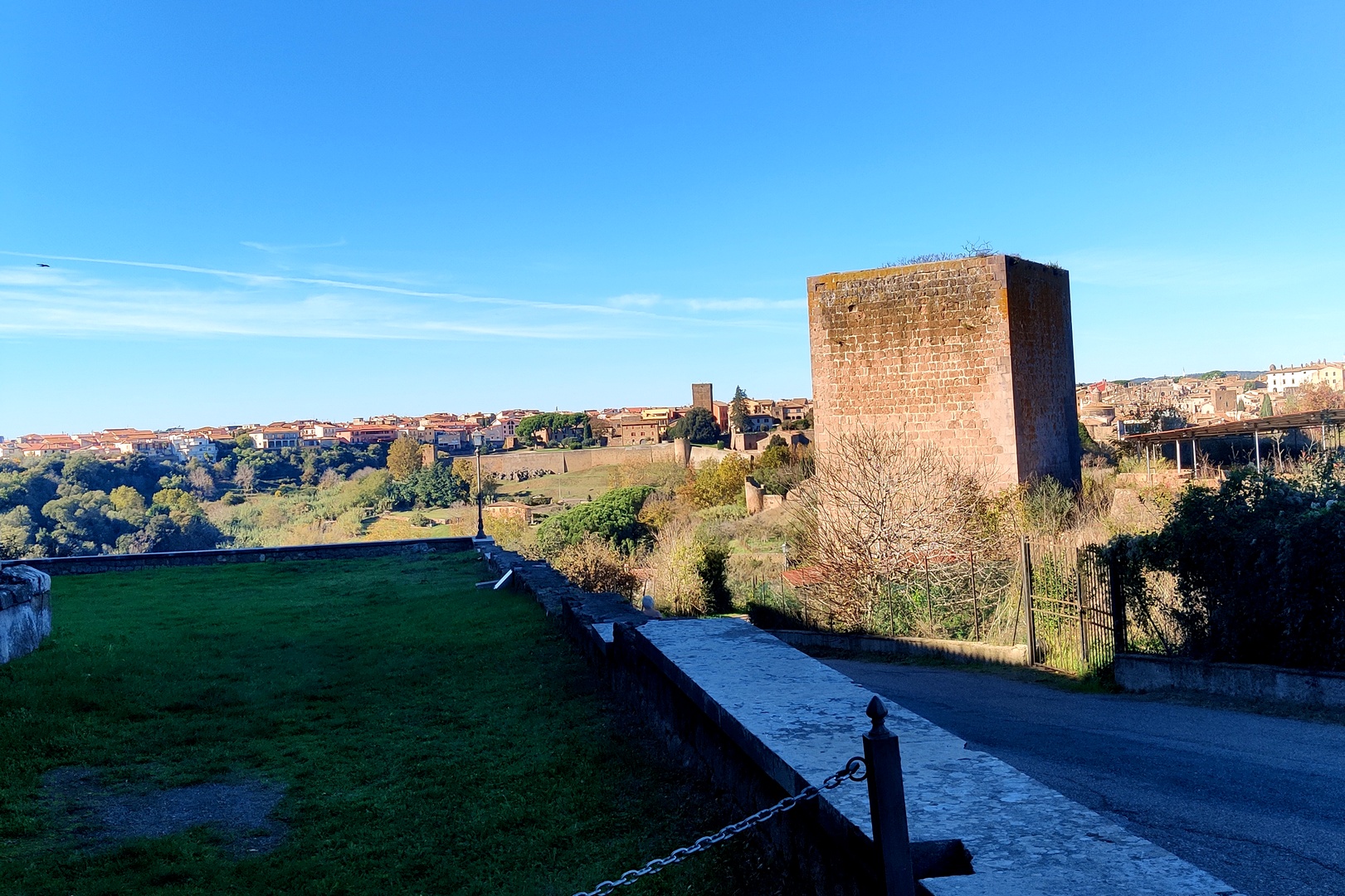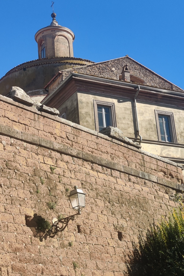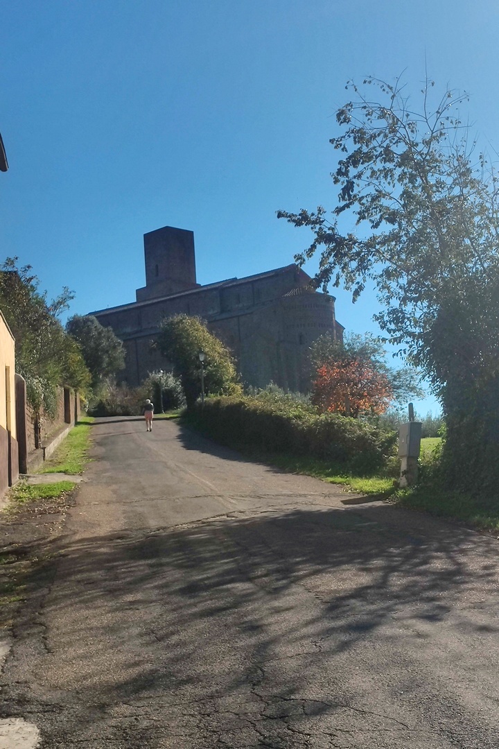 First, we spotted a small town – Tuscania – that had some very old fortifications and buildings. We stopped to take a look. The tourist signs in town – fortunately in both Italian and English – informed me that this was a VERY old town with evidence of inhabitation during the Bronze Age – perhaps 2000 BC. It also had Etruscan graves, still in existence, dating back to about 700 BC. The monastery / cathedral ruins there dated from the 12th and 13th century and hadn’t been used since the 16th century. A very old town.