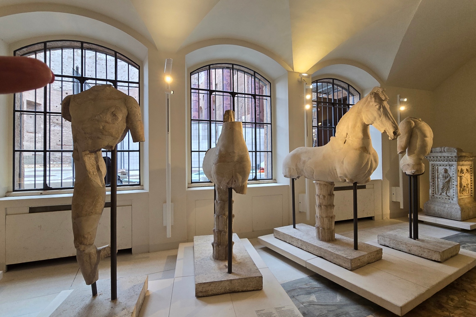 After we left the Colosseum we walked to the ruins of the Roman Forum, the seat of the Roman government for over 1,000 years. Not much left now except some columns. But the site has been rebuilt and repurposed about 10 times and the fragments that remain are interesting. We spent more time wandering this area than we spent in the Colosseum because the space is HUGE. I don’t know how many acres but it must be well over 100.