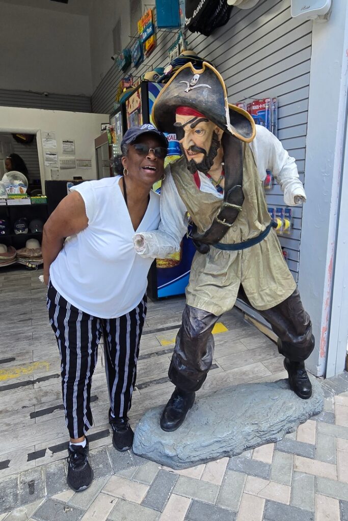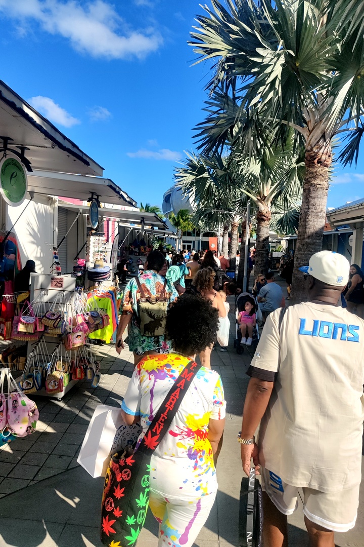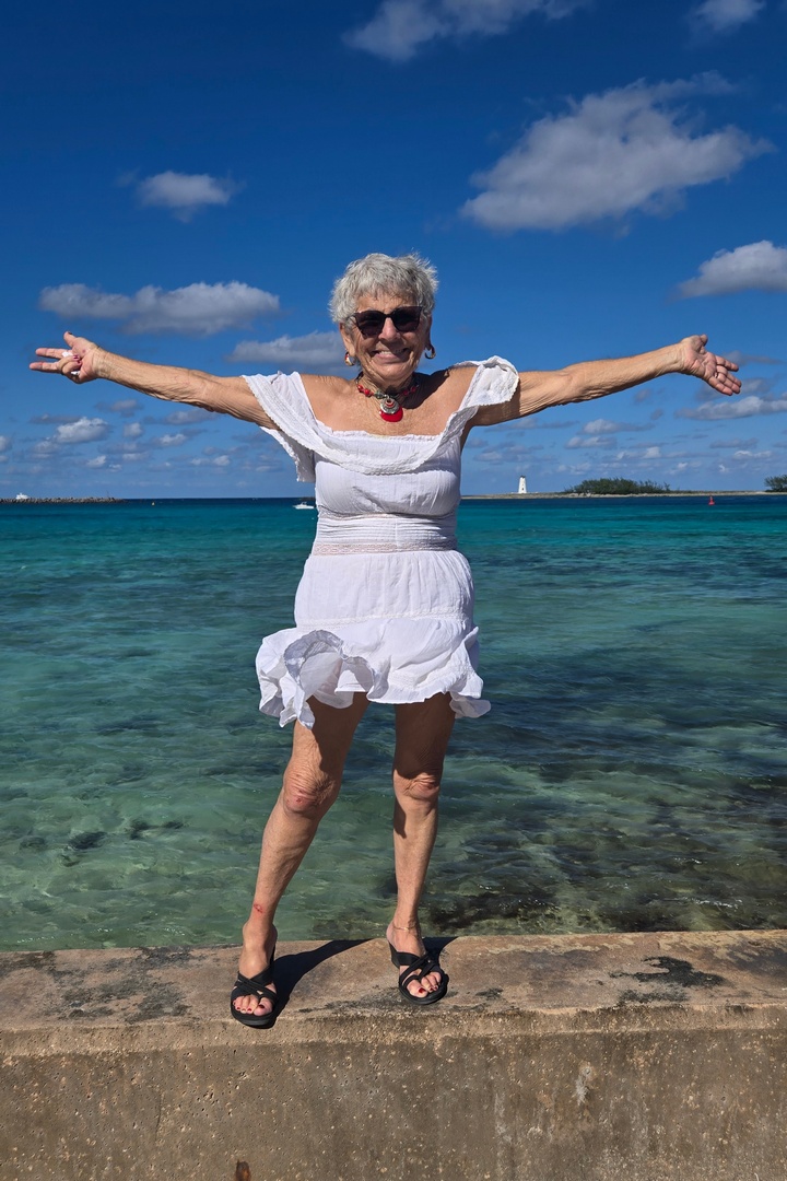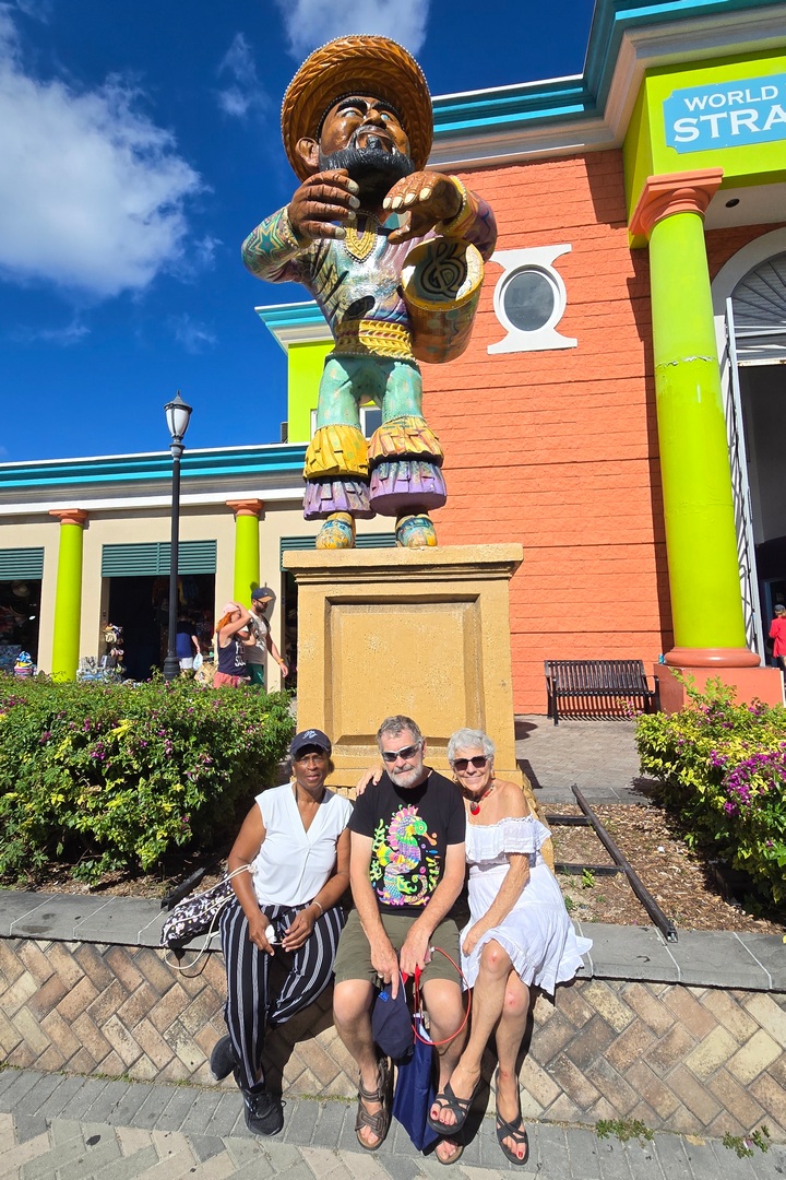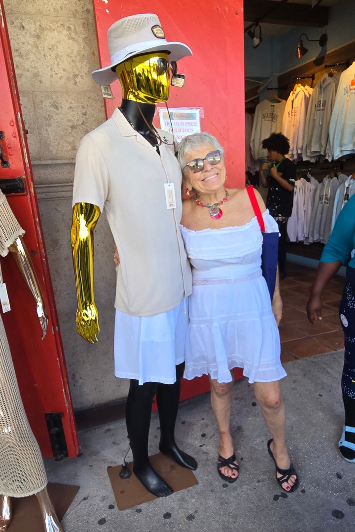 It was a long walk, but a nice one along the beach. The thrift shop was run by the humane society of Nassau so Regina and I sat and listened to barking dogs while Marlene shopped. She bought a couple of things, then we walked back. Over 18,000 steps in Nassau.